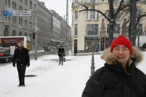 ヘルシンキは雪。 ただいま朝の8時半すぎです。 ヘルシンキはこの数日久しぶりの雪だったそうで、きのうは、真っ白になった街を歩き、さらに郊外へ出て日本からの到着直後に 寒中水泳をしたおなじ湖を訪れてそこのおじさんにあらためて取材をしました。 湖のまわりを一周歩きながら話をきいたんですけれどトレッキング用の道が雪で埋もれてるのでいつのまにか湖の氷上におりました。 氷、6センチの厚みがあれば130キロだったかな、そのくらいのかなりな大男でも大丈夫らしいです。 そう言われても、氷どころか、雪どころか、霜が降りるのも珍しい静岡生まれとしては、かなり、びびります。 大丈夫でしたけどー。 さてこれからヘルシンキを出てタンペレに向かいます。 内陸部はもっと寒いみたい。 防寒着着込んで行ってきまーす。 またネットがつながるようだったら報告しますねー。 2009/03/11 15:31 |