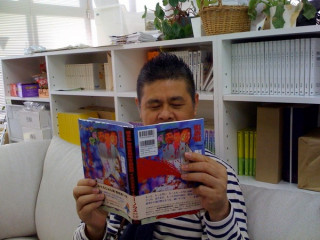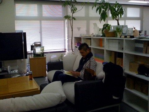 昨日ですが、ソファで、何かを読書中の社長を発見。