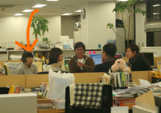お菓子を食べてる間は手が動かせないので自席の後ろで行なわれているミーティングになんとなく参加してたんですって。