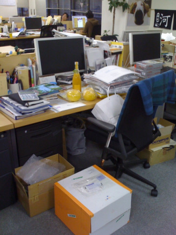シェフの居ぬ間に。 今週は、お休みのひとが多くて、ひとが少ないですなぁ。 と、あたりを見渡していたらば。 シェッフーーーーーー! 大変なことになっていますよ。 段ボールも着てますよ。 社販のタオルもとどいてます。 その中には、生ものもあります。 が、生ものは生ものらしく、ちゃんとラップがしてあったりと、気をつかってありますので、ご安心を。 おいしいものを、シェフにもキープしておいてあげたい! という気持ちから、のことですから。 シェフのおかえりは、もうすぐです。 2009/03/23 21:16 |