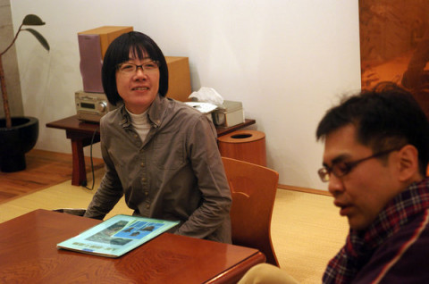いらっしゃいました。 きのうの夜のことなのですけれども。 スソアキコさんが、打ち合わせにいらっしゃいました。 なにの打ち合わせかというと、もちろん「ひとり古墳部。」の。 古墳部の打ち合わせは、いつも和室と決めています。 古墳ですからそりゃあ、和室ですよね。 いつもは 「ひとり古墳部。」の様子をひとりで聞くことに(ぜいたく!)。 撮影してきた膨大な写真を見ながらの熱いトークショー。 ひたすら続くハニワの画像、ときおり勾玉や石器の写真も。 いやあ、今回もおもしろかったです。 4月に再開の予定ですので、どうかおたのしみにー。 2009/03/24 12:23 |