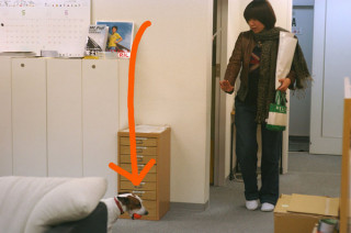 カメラを向けると荷物の中身を見せようとするよくわからないサービス精神のため、へんな姿勢ですね。
