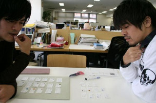 シャッフル。 「あす更新のコンテンツをどのように すてきに並べましょうか?」 という日々の打ち合わせ。 これをわれわれは、いつからか 「シャッフル」と呼んでいます。 はさみで切った「コンテンツカード」をテーブルの上で“シュッ、シュシュッ”と並べかえながら検討するのであります。 多くのシャッフルは、 あたりで行われるのが常ですが、本日の「シャッフラー」の顔ぶれはこちら。 おそらく初の組み合わせ。 新鮮。 そしてそれは、わりと静かなシャッフルになりました。 伏し目がちなふたりが、黙々と‥‥。 2009/03/27 13:34 |