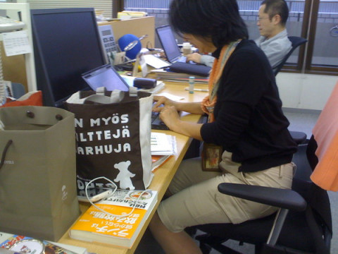 OHTO~OHTO~ かわいいふくろが置いてあったので使い方を聞いてみました。 何が入っているんですか? 「こっちのココア色のふくろには、 本2冊、財布、ティッシュ、カメラ、 タオル、ガム、ガス代明細書、おかし。 リュックの時は、 袋ごとリュックに入れて、 会社についたら、ゴソッとだすの。」 バック・イン・バックですね。 こっちのクランベリー色のふくろはどうでしょう? 「こっちは、机の整理につかってるの。 タンブラー、紙コップ、あめ。」 整理整頓に使ってもいいですね。 みんなは、どんな風につかっているのかな。 2009/04/17 16:40 |