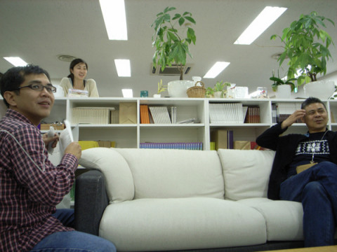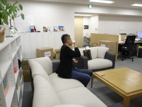 遅くまで会議をしていた社長がソファーに座ってる。