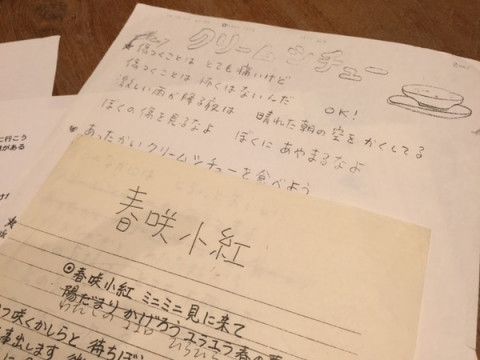 イトイヤノへむけて 9月2日に行われる矢野顕子さんが、糸井重里作詞の曲のみを歌うコンサート 「ふたりでジャンボリー」の打ち合わせを行いました。 おふたりは長年、日本とアメリカ間をファックスでやりとりをしていたそうです。 詩ができたら、ファックスを送る。 (近年はもちろんEメール) そのファックスを矢野さんが持ってきてくださいましたよ! お宝ー。 なぞのイラストなんかも、ありました。 ロール紙だった頃のもの (お若い方々は、知らないかもしれない)は、コピーをとってあったり、消えかけているものもあったり。 ファックスでのやりとりが、このふたりだからこそ、うまくいく歌の作り方っぽいです。 当日、何を歌ってくださるのでしょうか。 めちゃめちゃたのしみです! 2016/08/23 19:36 |