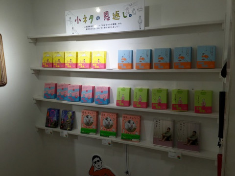 TOBICHIに! 「小ネタの恩返し。」発売記念として装画&挿絵を描いてくださった和田ラヂヲ先生の期間限定ショップが TOBICHIの「素敵な四畳間」に! 4冊の「小ネタの恩返し。」や 「Tシャツ・ポーチ・ステッカー・ 缶バッヂ・手ぬぐい」 というオリジナルグッズはもちろん、先生の既刊本も、販売します。 さらに、初日の明日8月27日(土)は先生が松山から上京、 「ずっとあこがれだった」という 「一日店長」を、務めてくださいます! 品出しや接客などの店長業務が落ち着いているときには、お願いしたら本にサインもしてくれると思います。 ちなみに、あたり一面に先生のイラストを貼り付けるなど、店内装飾は本をデザインしてくださった、おなじみプリグラフィックスの清水さんが自由気ままにやってくださいました。 社内に、ちょうどいい感じの 「金ダライ」があったので(なぜ?)、 「おやつ、そしてスイーツ編」 の表紙よろしく、天井から吊ったりしてもおります。 背景には金屏風のような富士山。 どこか晴れがましい気分がするのに頭上には金ダライ‥‥。 ぜひ、ご来店記念の撮影スポットとして、ご活用ください。 もちろん、安全性には十分配慮しておりますのでご安心あれ。 会期は、あす8月27日(土)から9月5日(月)まで、です。 先生、こんなお店でお待ちしております! みなさん、ぜひ、遊びに来てくださいね! 2016/08/26 22:36 |