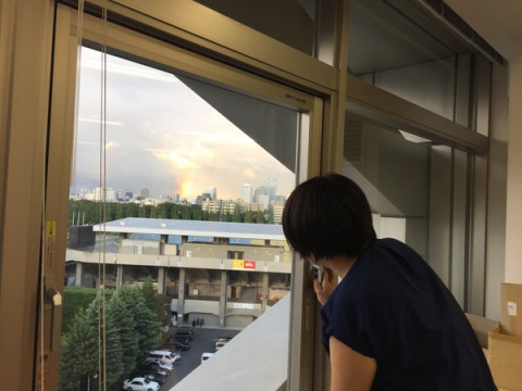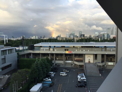 東京は、台風が過ぎてふっとい虹が出ました。