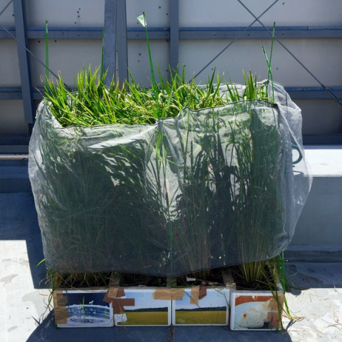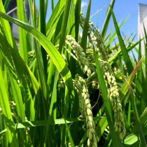 秋の気配が。 よく晴れた港区から、今日の稲です。 ただでさえ強い風の吹く屋上で、しかも今年は台風がたくさん来たりしましたが、みんな、がんばってます。 ちょっと背が大きくなりすぎた‥‥のか、やや傾いている稲くんもいます。 このあたり、来年への課題です。 もう少し土の量を増やしたらいいのか。 でも、そうすると貯められる水量が減っちゃうのかなあ。 ちょっと、いろいろ研究してみます。 やっぱり風が強いので、防風ネットを、高めに引き上げました。 天気はものすごくいいんですが、 「焼ける感じ」は、もうしない。 秋が来るんですねー。 2016/08/31 12:49 |