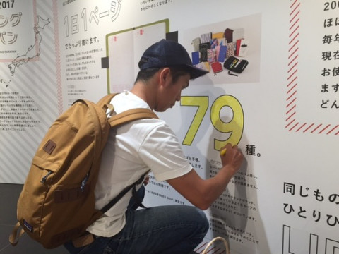 壁を塗る 明日から渋谷ロフトでスタートする、 「ほぼ日手帳2017 ミーティングキャラバン」の設営にやってきました。 会場には、ほぼ日手帳を紹介するこんな壁があります。 デザイナーの田口は、きれいにピシッと貼られた壁にマジックで色を塗っていました。 シンプルな壁だなとは思っていたけど、塗ることが前提だったとは‥‥。 「貼って終わりの展示にはしたくないから」 とのことです。 これから、設営作業も佳境に入ります。 失敗できない塗り作業、緊張しますね。 さあ、渋谷ロフト1階は、どんな風景になるのでしょうか。 2016/08/31 19:30 |