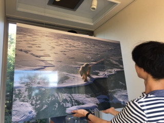 「星野道夫の100枚」展、搬入1日目 こちら、TOBICHIです。 明後日から開催する 「星野道夫の100枚」展の搬入を今日と明日の2日間かけて行っています。 搬入はいつもワクワクするのですが、今回もワクワクが止まりません! 竈の上には、大きなホッキョクグマを飾りました。 この涼しげな写真が、TOBICHIにいらっしゃるお客さまをお出迎えしてくれます。 そして、朝から写真家の石塚元太良さんが巨大ライトボックスを手作りしてくれました。 「35ミリのカラーポジフィルム」をみなさんに見ていただくための台です。 すばらしい出来栄えですので、ぜひこちらの台にもご注目ください。 搬入のくわしいレポートは TOBICHIのページでお伝えしています。 もしよければ、ご覧ください。 明日も引き続き、がんばるぞー! 2016/09/06 19:15 |