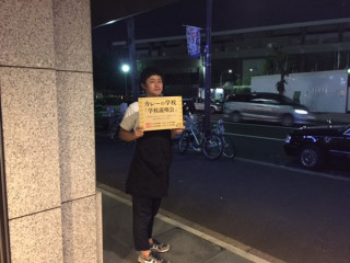 カレー説明会にいらした方が迷わないように、池田くんがビルの前でご案内しています。