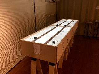あす8日から。 自然写真家・星野道夫さんの傑作100枚をルーペで覗いてご観覧いただく 「星野道夫の100枚展」、先ほど会場が完成いたしました。 35mmのカラーポジをライトボックスに置いてルーペで覗く。 当初は、TOBICHIのスペースで少しでも多くの星野道夫作品を見ていただくためのアイディアだったのですが、実際にルーペ越しに作品を見てみると、これが、何というか非常に特別な体験。 自分と作品との一対一の世界に没入できるというか、ちょっと、まわりの音が聞こえなくなるような錯覚を起こすほど。 とにかく、写真の見方としてはあまり体験したことのないものだと思うのでみなさん、ぜひ、ご来場くださいね。 なお、壁にかかっている9枚の額装されたオリジナルプリントはご購入いただける作品。 六つ切サイズ、額装込みで 「54000円」(送料別)とかなりお求めやすいです。チャンスです。 展覧会についての詳しいことは今日からスタートした 「なんでもない日の、 星野道夫さんのこと。」 という連載ページに書いてありますのでぜひ、チェックしてみてください。 一階には、星野道夫さんの著作をできるかぎり、並べました。 ポスターや一筆箋などのグッズも置いてありますので、ぜひ、お立ち寄りくださいねー。 2016/09/07 20:14 |