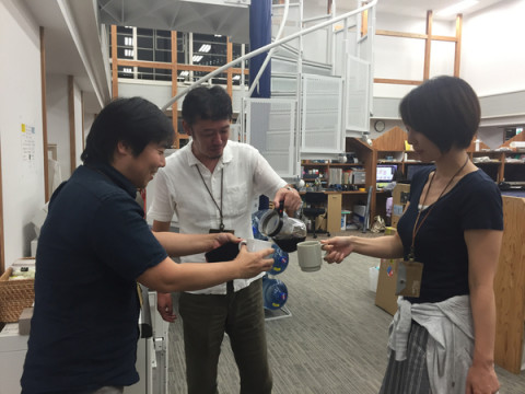 スペシャル宇宙コーヒー うちの宇宙部(技術部) そう、たったひとり 夕方になり、多少ぼーっとして仕事をしていたら、さわやなぎがコーヒーサーバーを携えてやってきました。 わー、宇宙コーヒーだ! 「今日の宇宙コーヒーはただのコーヒーじゃありませんよ。 なんと、今日は、カワモトセンパイプリゼンツの‥‥」 ええーーー!! そうなの? これまで、このコーナーでたびたびご紹介してきた宇宙コーヒーにいっさい関わってこなかった (ざわざわざわざわ←周囲の胸の内の音) 「記念なのでパイセンのコーヒーを3人で飲んでおきましょう」 どどどどどどーゆう風のふきまわし‥‥ああ明日は‥‥‥ 「どうやら台風の影響で天気が悪そうですね」 やはり。 でもって、センパイは、飲まないの? 「パイセンは豆乳ラテでないと召し上がりませン」 そーなんだ、ややこしい‥‥。 でも、くやしいくらいおいしいコーヒーだった。 パイセンどこで買ったのかしらあの豆。 2016/09/14 19:06 |