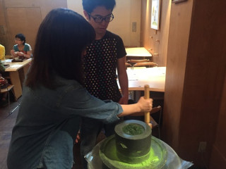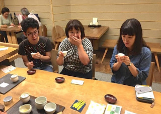 秋の茶遊会 昨日、2ヶ月ぶりの茶遊会に行ってきました。 茶遊会とは、うおがし銘茶さんが開催しているイベントで、築地新店の1〜5階にてさまざまなお茶とお菓子をいただける会です。 むかったメンバーはお茶をこよなく愛し、うおがし銘茶さんに通い続け、急須や湯のみにも詳しくなりつつある 手帳チームで、お茶が好き、前から茶遊会に行ってみたい!と言っていた 今回の茶遊会のテーマは 「おまちかね できたて宇治茶」です。 まずエレベーターで5階にあがると、昔ながらの石臼が置かれていて、そこで挽いた抹茶をいれてくれます。 うおがし銘茶の会長自ら石臼挽きを実演してくださいましたよ。 とほめられていました。 ふだんは静岡工場で働いている方も茶遊会のために東京に来てお茶をいれてくださっています。 玄米茶も香ばしくておいしく、秋を感じるひとときでした。 びっくりしたのは、2階でいただいた玉露。 ゆっくりと時間をかけていれる玉露はうまみがぎゅっと濃縮されていて、口にふくむと、わぁ、なにこれ、すごいーーーっ! となります。 我々が驚いているまさにその瞬間を、うおがし銘茶さんが撮ってくださいました。 土曜まで開催しているので、ぜひぜひ行ってみてください。 限定販売しているお得な福袋もありますよー。 ============= 茶遊会 うおがし銘茶 築地新店「茶の実倶楽部」 9月12日(月)〜17日(土) お一人様 700円11:00〜17:00 (最終日は16:00まで) アクセスはこちら ============= 2016/09/15 12:05 |
