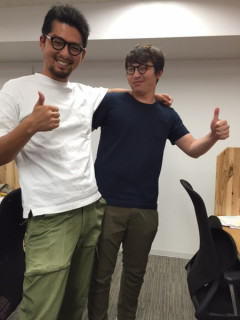 白いTシャツの青年と、紺のTシャツの青年がやってきました。