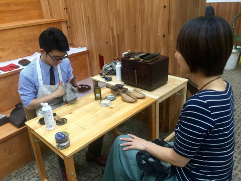 1ヶ月か2ヶ月に一度くらいの割合で出張営業してくださっている 等々靴磨店の山邊恵介さんですが今月は、あす17日(土)からの3連休にTOBICHIで営業いたします。 靴を磨いてもらうのって、やってもらったこと、ありますか? これがですね、がんばって疲れた革にオイルが染み入るがごとく、じんわり「うれしい」ものであります。 大切にしている靴が人の手でピカピカに磨かれていく姿は、ちょっと、いいですよ。 靴だけでなく、手帳カバーやカバンとかでも大丈夫。 磨いてほしい革製品をぜひ、等々靴磨店へお持ちください。 今日は、弊社の乗組員のために、社内にお店をオープンしてくれています。 さっそく、磨いてほしいレザー製品が次々と持ち込まれています。 あ、明日からの等々靴磨店、料金やオープン時間などの詳細については こちらのページでご確認ください。 2016/09/16 13:00 |