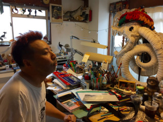 下田さんのアトリエへ 「恐竜たちへ」にご登場いただいている下田昌克さんのアトリエに今日もまた、行ってきました。 白い恐竜たちよ、こんにちは。 下田さんちの今日のBGMは大音量のマドンナでした。 恐竜の展覧会は来週木曜、22日(祝)よりTOBICHI2ではじまります。 みなさんが恐竜をあたまにかぶって写真を撮ることもできますよ。 そして、今日のかえりぎわ、下田さんの「イラストのお仕事」も見せていただきました。 3枚目の挿画です。 すごいタッチ、渋い絵! 2016/09/16 21:26 |