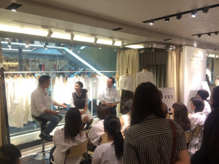トークショー、終了です! さきほど、たくさんのお客さまに見送っていただきながら、トークショー終了しました! 工場の裏話から、素材の話、シャツのディテールの話、コーディネートや着回しのポイントまで、いろんなお話がきけて楽しかったですー。 帰り際には、STAMP AND DIARYのアトリエスタッフの方々ともお会いできました! みなさん、それぞれ素敵に 「白いシャツ」を着こなしてらっしゃいました! 女性が着ているものはすべて、STAMP AND DIARYのものだそうです。 どれもかわいい! ほぼ日の白いシャツのお店では、完売してしまった商品もありますがまだお求めできるものもありますので、よかったら覗いてみてくださいね。 2016/09/18 15:10 |