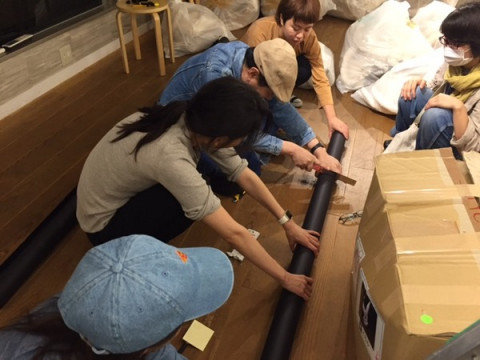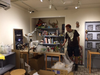 TOBICHI搬入しています 9月22日(木・祝)よりTOBICHI2で開催する谷川俊太郎+下田昌克 「恐竜がいた」展の搬入が今日からはじまりました。 この恐竜展、展示が大がかりになることが予想されるためいつもよりちょっと早めの搬入開始です。 2階ではTOBICHIのスタッフ総出で巨大のり巻き‥‥のような何かに入刀していました。 (1枚目の写真) 「いぃぃぃいいいいま、集中してるから話しかけないで!」 と言われました。 すごい緊迫感です! 1階は下田昌克さん愛用のミシンも運び込まれました。 ここにミシンの音が響き渡るのかぁ‥‥。 とてもたのしみです! 2016/09/20 19:53 |