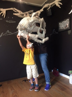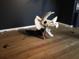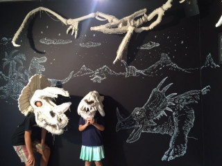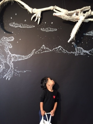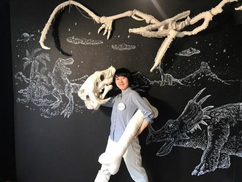 YUKIさんが着た恐竜 TOBICHI2では、ただいま 「恐竜がいた」展を開催中。 下田昌克さんがキャンバス地を縫ってつくった恐竜たちをドドーンと展示しています。 その恐竜をかぶって写真を撮ることができるのですが、歌手のYUKIさんはライブで下田さんの恐竜を着て歌をうたったことがあるんだそうです(!)。 そして本日、YUKIさんより『恐竜がいた』の出版のお祝いにコメントをいただいたので、ほぼ日でもご紹介させていただきます。 ーーーーーーーーーーーーーーーーーーーー 下田さんのティラノサウルスを身に纏い、奈落からポップアップリフターでステージに上がった私は、持ち歌の『COSMIC BOX』(仮タイトル『宇宙砂場』)を歌った。 完全に無敵だった。 何故ならあの時、私は暴君トカゲで、肉食のそれで、最強だったからだ。 確かにあの時、武道館には、遥か遠い昔に還りたいと歌う、恐竜がいたのだ! YUKIーーーーーーーーーーーーーーーーーーーー TOBICHIでは、YUKIさんが着た恐竜も展示しています。 1枚目の写真の子ですので、どこにいるのか探してみてくださいね。 展示は、今週の日曜日までです。 YUKIさんのように、恐竜をかぶって強くなる感覚をあじわいに来てください! 2枚目以降のような写真を撮ることができますよー。 TOBICHIは、11時〜19時オープンです。 ※かぶって写真を撮ることができる恐竜は YUKIさんが着たものではありません。 あらかじめ、ご了承ください。 2016/09/30 20:13 |