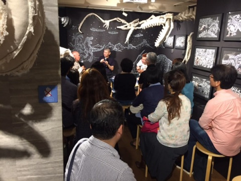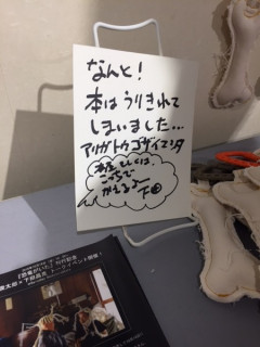 恐竜展終了しました 11日間TOBICHIで開催した 「恐竜がいた」展が終了しました。 最終日、なんと肝心の本が完売してしまいました。 たくさんのお客さまに足を運んでいただきありがとうございました。 1日も欠かさずTOBICHIに在廊した下田昌克さん、ありがとうございました。 ほんっっとーに、おつかれさまでした。 たのしかったなぁ。 「恐竜がいた」の本は、増刷が決まったそうです。 初版はまだ少しならAmazonで買えるみたいですよ。 ぜひ、読んでくださいね! それでは、また、TOBICHIでお会いしましょう。 次はあの展示だ! 2016/10/02 19:52 |
