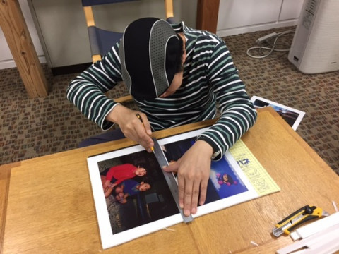次のTOBICHIの展示はパネル類が多いので、手があいている人で手伝ってパネル切りをしています。