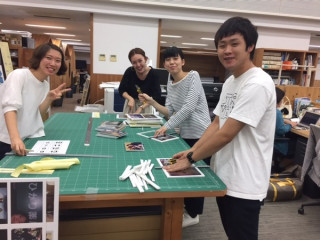 木曜日からのTOBICHI展示のパネル切りの仲間がだんだんと増えています。