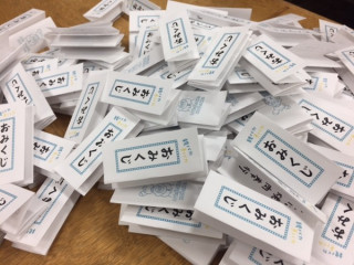 人数が増えたことにより、私たちはパネル切りをクビになりおみくじ折り係になりました。