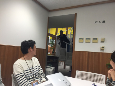 会議室・パン屋の入り口は、社長室に通じる螺旋階段から見ることができます。