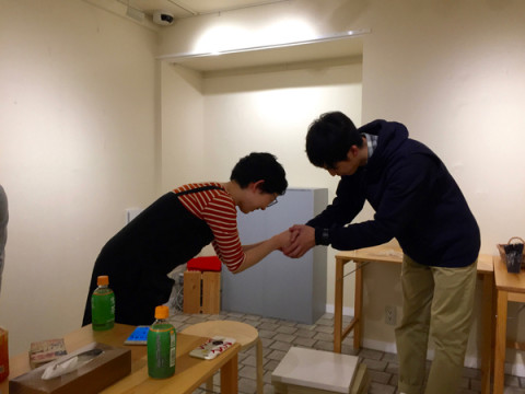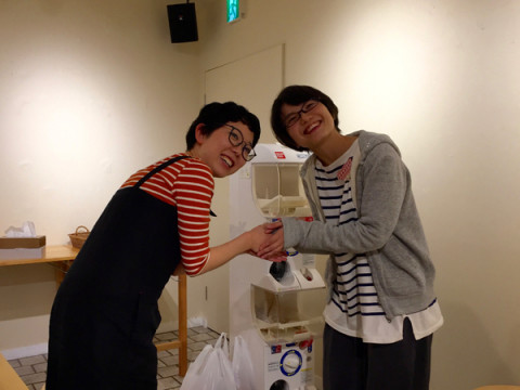 おもいで きのうTOBICHI2の 「みうらじゅん+くどうひかり親バカ子バカ展」 が終わり、撤収作業をいたしました。 片付けが一段落し、さいごに、みうらじゅんさんから差し入れでいただいたどらやきとお茶でお別れのカンパイをしたところ、やおら、くどうひかりさんがたちあがって、 「お世話になりました、ありがとうございました」とひとりひとりと握手をされました。 8日間、休まずにTOBICHIに通ったひかりさん、ほんとうにおつかれさまでした。 お別れはちょぴっとさみしかったです。 次のTOBICHIイベントは 「気仙沼ニッティング」ですよ〜。 2016/10/14 18:18 |