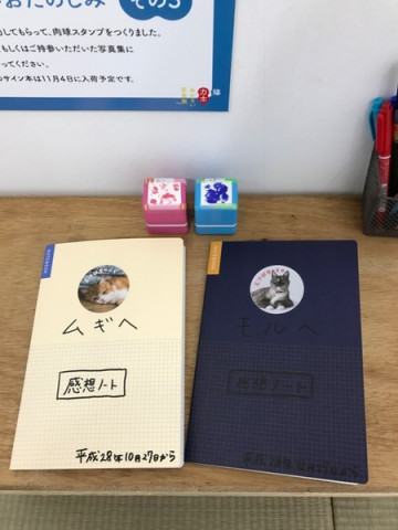 4畳間にもお立ち寄りください 常設ショップの すてきな4畳間にも、ぜひお立ち寄りください。 蒼国来(そうこくらい)関の等身大パネルがすごい! お店に入ると、びっくりします。 記念写真も、どんどんどうぞ。 未収録カットも、どれもかわいいです。 わたしは、はじめはモル派だったのですが、いまはムギが好きです。 ムギの、フレンドリーじゃない感じが写真からも伝わってきて、ねこ好きにはたまりません。 いつも、ちょっと険しい顔してて。 写真集をお買い上げの方と、すでにお持ちの方にはモルとムギに協力してもらって作った足型スタンプを押していただけるようになっています。 ぜひ、押してってくださいっ。 2016/10/27 15:18 |