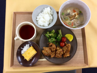 からあげはもちろん、しょうががきいていてやわらかさと歯ごたえのバランスが抜群でおいしかったけど、つけあわせのブロッコリーのごまあえもグーでした。