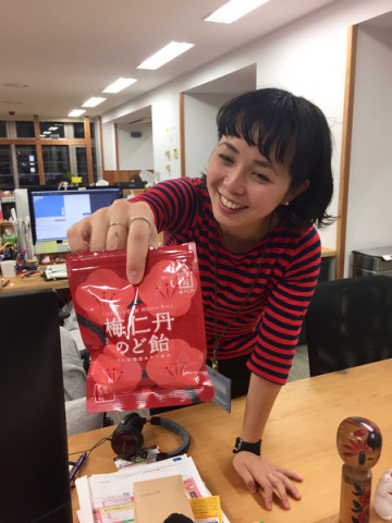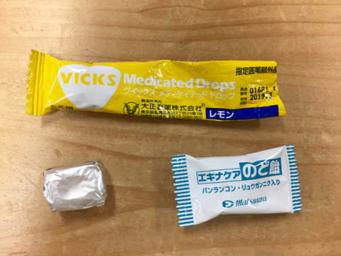 のどあめ隊 さきほどすぎやまの投稿にもありましたように、私はいまマスク姿の風邪ひきでございます。 かなり治りかけなのですが、治りかけならではの咳がときおり出て、まわりに心配をかけています。 咳というのは夜に出るので、そそくさと帰ろうと思っていたところ、仕事があと一歩のところでこほ、こほこほ、と出てしまいました。 こういうとき、わが「ほぼ日」ではスサッッッッッッと忍者のような人たちがあらわれることがあります。 それがこの、のどあめ隊(=近所の人たち)です。 忍者たちが今回薦めてくれたのは、王道龍角散、そしてエキナセアのどあめでした。 実は自分でヴィックスを舐めようとしていたのですが、こんなにそろっては、迷います。 追い打ちをかけるように 仁丹ブランドの「梅」です。 どんだけ持ってんだ、のどあめ。 というわけで、本日はこれらを舐め終わるまでがんばって しょうがシロップ飲んで寝まーす。 (いまわかったのですが、しょうがシロップは12月8日くらいに再販売されるみたいです。 やっほ〜) 2016/11/29 19:48 |