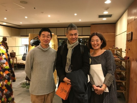 こうふん! えー、こちら、興奮しております。 明日から展開されるアンリークイールとミナペルホネンのコラボのお披露目会があったので行って来ました。 写真でおすそわけ。 入り口から、クリスマシーなディスプレイがすてきでした。 そして、中に入ると、なんとまあ! すてき! なんとすてきで、自然なコラボでしょう。 ミナペルホネンのテキスタイルとアンリークイールのレザーが、ぴったり。 このコラボの出会いは、ほぼ日手帳に関わっていただいている方々にお集まりいただく 「手帳大ミーティング」という会でうまれたんだそうです! 皆川さん、普賢寺さんと、お仲人イトイでお写真パシャリと。 ほぼ日にとっても、うれしいお話でした。 お披露目会のお茶や、お菓子もかわいくて写真を撮りまくりましたよ。 実物を、ぜひお店で見てみてくださいね。 はー興奮でしたーーー。 2016/12/07 19:40 |
