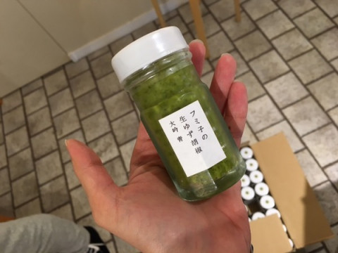 ゆず胡椒、TOBICHI到着! 待ってました!! フミ子さんのゆず胡椒が、今年もTOBICHIにやってきましたー! ゆず胡椒がぎゅうぎゅうに詰め込まれたダンボールが、こんなに届きました。 これを、レンタルしたでっかい冷凍庫に入れていきます。 わたしが4人くらい入れそうな冷凍庫です。 でっかいです。 新登場の味「黒」の姿も。 おおー、ほんとだ、黒い。 4枚目の写真が「黒」、5枚目の写真が「青」です。 ゆず胡椒の販売は明日11時からです。 詳しくはこちらのページをご覧ください。 2016/12/08 15:13 |