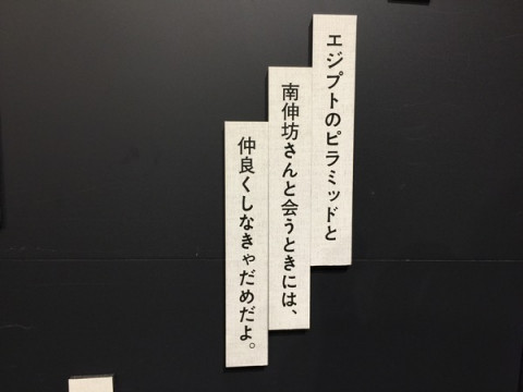 たくさんのことばが! 「小さいことば」シリーズの中から一行ずつ切り出したことばを、自由に並び替えてじぶんだけの 「小さいことば」をつくろう、という遊びにたくさんの方が参加してくださっています。 ずらっと並ぶとなかなか壮観です。 大人たちがじっくり悩むのに比べて子どもたちは、概ね速攻です。 またしても名作が生まれたので紹介しておきますね。 「エジプトのピラミッドと 南伸坊さんに会うときには、 仲良くしなきゃだめだよ。」 キミ、南伸坊さんのこと知らないだろうに、伸坊さんのことがよくわかってるね。 どうもありがとう。 2016/12/17 18:10 |
