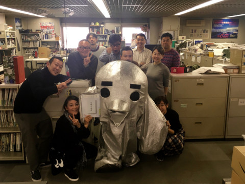 行ってきました みなさーん、こんにちは、フェザード・ きのうまでTOBICHIイベントで3日間活動していた興奮さめやらぬうちにまた、次のお出かけだジュよ。 今日は、マガジンハウスの雑誌 BRUTUSの編集部におじゃましたんだジュ。 なぜかというと、シジュのおともだちの シジュ人形を買ってくれたのでお届けに行ってきたんだジュ。 いま、雑誌はちょうど年末進行で、次号1月13日発売の、超〜めだま号 「帰ってきた、日本一のお取り寄せ」の校了日だというのにこの巨大宇宙鳥を編集部に招いてくださったみなさんに感謝だジュ。 西田編集長は、お届けしたシジュ人形を開封してくれて、中から魂人形を取り出して、少し驚いていただジュな。 あした20日から ほぼ日ストアでもシジュ人形が発売されるだジュが、数が限られているので、ご希望の方はおはやめにお申込みをお願いしたいだジュ。 もしも買い逃しても、みうらさんのサイン特典はないんだジュが、ヴィレッジヴァンガードさんでも2月ごろに発売予定だジュからな! それじゃー‥‥あー、シジュはあさってもロケなんだった。 年末だジュなぁ。 じゃ、BRUTUS編集部のみなさん、また遊びに行かせてだジュ〜。 2016/12/19 14:52 |