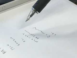 暗号。 明日の撮影のために、事前確認のミーティングをしていました。 みんなで話しあいながら 「あれも持っていこう」 「これも準備しとかなきゃね」 と話していたところ、 にょろにょろしたもの。 後から見て、わかるのかとたずねると 「わかる。わたしにだけわかる」 と言っていました。そうなのか。 あ、そういえば、わたしも‥‥明日の撮影で持って行かなきゃならないものを手にメモしていました。 長GT紺バース これはみんなに見られると恥ずかしいので、自分にだけわかる暗号メモです。 何を隠そう、わたしの明日の持ち物は、 長靴と紺のコンバース です。忘れないようにします。 2017/01/11 16:52 |