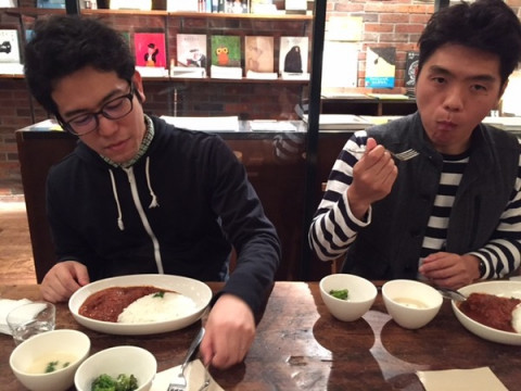 「ほぼ日」の読みものチームとデザインチームの有志たちはある出版社のカフェに来ました。