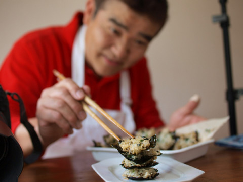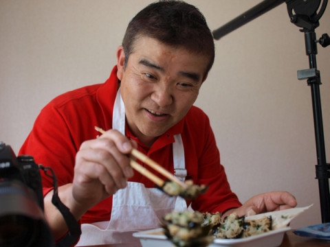 ごちそう海苔「海大臣」! じつはすでに、ちょっとだけ、 こちらのページでお知らせしていた 【ごちそう海苔「海大臣」2009】。 林屋海苔店さんに入荷のめどがたちまして、5月中旬に、「ほぼ日」で販売を開始する予定となっております。 きょうはこの海苔のおいしい食べ方を、 『LIFE』の飯島奈美さんといっしょに研究してきましたよー。 画像は、『LIFE』でもおなじみの食欲写真家・大江さんがものすごくたのしそうに 「海苔としらすとねぎのかき揚げ」の撮影準備をしているところです。 ちなみに、ことしの海苔レシピは8種類。 どれも、かんたんにできて、おいしいものばかりですよ〜。 どうぞおたのしみに! 2009/04/22 17:02 |