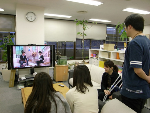 ←は、昼に見そこねた乗組員が、録画を見ているところ。