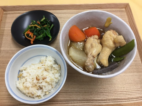 おでんの配膳 今日の給食は、おでん。 食堂に行くと、すでにおでんは大きな器に一人分ずつ盛られて、テーブルに置いてありました。 というわけで、今日の配膳当番のやることはシンプル。 「おでんはあちらにありまーす」 と言う案内係。 手をあげて机の方向を指し示すという、給食を円滑にすすめるための縁の下の力持ち的な役割‥‥なのかどうかはわかりませんが、なんとなくおもしろかったので、つい、写真にとってしまいました。 おでんはほんとに、味がぎゅっとしみこんでいて、鶏肉もやわらかくて、さいこうでした。 いっしょのテーブルに座った乗組員の 「余裕でもう一人前いけます」 と言っていましたが、ほんとにそんな感じでした。 おいしかった〜! 2017/01/24 13:21 |