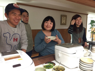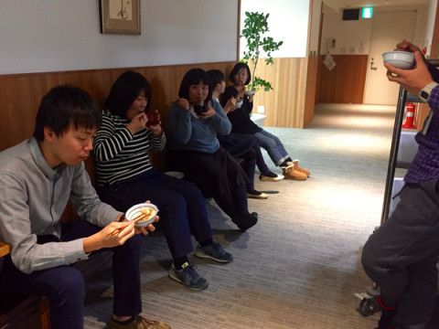 夜ごはん 火曜日は、お昼の給食をあたためなおしたり、ごはんを炊いてあたらしいおかずを加えたりして、 「夜ごはん」が出ることがあります。 というか、たいてい出ます。 いつも「夜」を作ってくれる 私たちはドヤドヤとキッチンに押しかけて、それをありがたくいただきます。 今日はお昼がおでんだったので、りかさんがそうめんを茹でてくれて、そこに入れて食べました。 みんながベンチに腰掛けて 「おでんそうめん」をずずずずーっと食べているのがなんだか、見ていて、よかった。 しかし、 おいしいね、そうめん。 火曜の夜はかくふけゆく。 2017/01/24 20:43 |