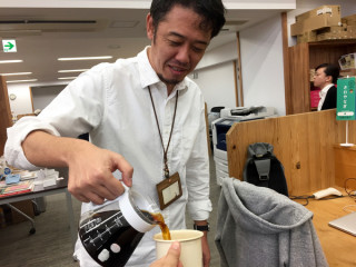「今日のコーヒーはカワモトさんが提供してくれた豆で淹れたんですよ‥‥」