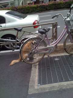先日、お昼を買いにいったときに見かけたお犬さん。