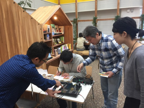 みんなで準備中 「ほぼ日手帳2017spring」が発売になって、大阪・梅田ロフトでは今日からTOBICHIの ロフトのビルを中心に大阪名物を盛り込んだデザインです。 梅田ロフトの近くにお住まいのかたは、ぜひ手帳に押していってくださいね! さて、梅田ロフトにスタンプがあるのも、2月4日(土)に梅田ロフトで 「ほぼ日手帳2017 ミーティングキャラバン」を開催させていただくからなのです。 (募集は終了しましたが観覧はできます!) イベントの開催を前に、 こういった機械に関しては、僕ら、まったくもって素人な3人なので、当日、ちゃんと音が出るかなあと不安ですが なんとかなる、なんとかしよう! 2017/02/01 19:13 |