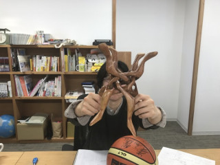 謎な物体。 わたしのおむかいは、2月から入社された涌嶋(ワクシマ)さんの席なのですが、今日彼女の机の上に謎の物体が‥‥。 や、謎ではない。 よく知っている物体ではあるが、ここにある意味が謎な物体。 あまりに謎なので、涌嶋さんが離席しているときに、ちょっとザワついておりました。 だって、サインとか書いてあるし、謎すぎる! (数時間経過) あ、やっと会えた涌嶋さん。 こちらが、涌嶋さんです。 その、それについて教えてください‥‥。 「え! バスケットボールですよ。 前の職場の先輩にもらって。 日本代表のサイン入りです。 台もすごいでしょう。 木で、ほら。(ガションガション)」 いろいろすごい。 なぜ、これがここに急に。 「仕事中の気持ちの安定のために。 触ると落ち着くし、 考え事のときに触ったり、 あごを置いたりもできます」 へ、へーーーー。そうなんだ。 ふっしぎー! おもしろい人がやって来ました。 そのうち、顔アイコンもできることでしょう。 以後、お見知りおきを。 よろしくお願いしまーす。 2017/02/02 14:39 |