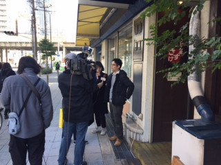 たまたま入店したタイミングで、うどん屋さんにテレビの取材が入っていて、みんなで食べたうどんの感想を取材されました。
