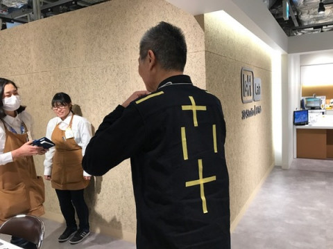 そのあと、社長は背中にマーキングをして3Dフィギュアをやらせていただくことに。